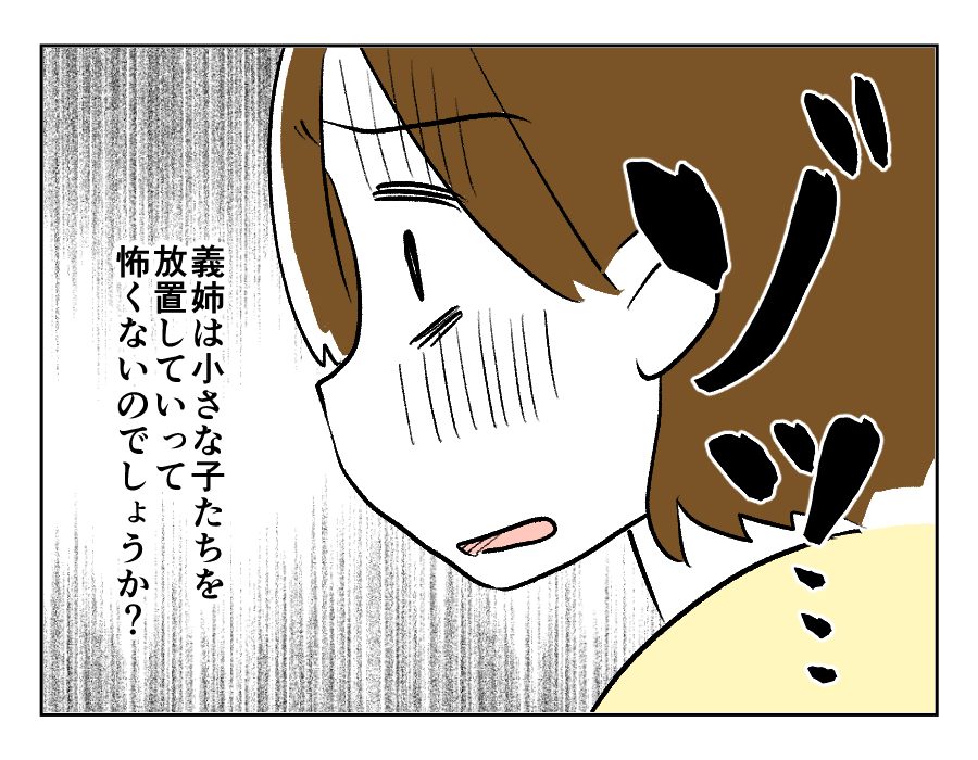 すぐにミサキさんが出てきたからよかったものの、お義姉さんは「子どもたちが危ない」とは思わなかったのでしょうか。普通だったら心配で放置などできないと思いますが……。「そういう価値観の持ち主」と言ってしまえば、それまでなのかもしれません。ですが、はたから見ていてもヒヤヒヤしますよね。