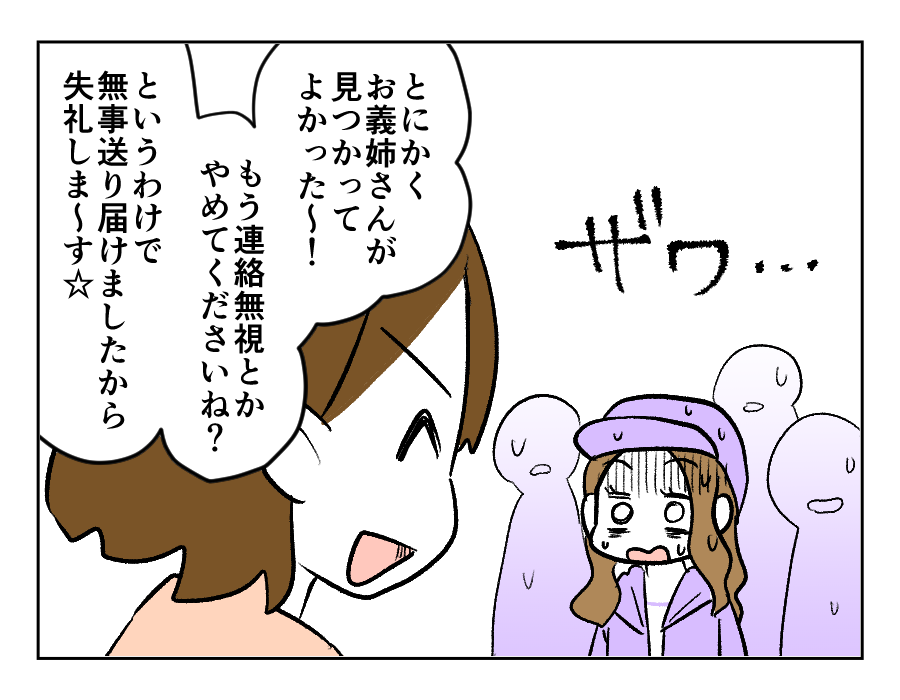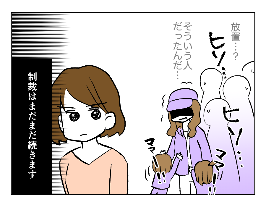 ミサキさん、お義姉さんの「子ども放置」をママ友たちの前で思いっきりバラしてしまいました。ママ友たちはドン引きしています。普段は下の子どもたちを連れてきているのはママ友たちも知っているでしょうけれど、こんな横暴なことができる人とは関わりたくないですよね。おそらく今後、お義姉さんはまわりから敬遠されるのではないでしょうか……。けれど仕方ありません、身から出た錆なのです。こうしてミサキさんは盛大な暴露とともに、カイくんたちを無事送り届けたのでした。