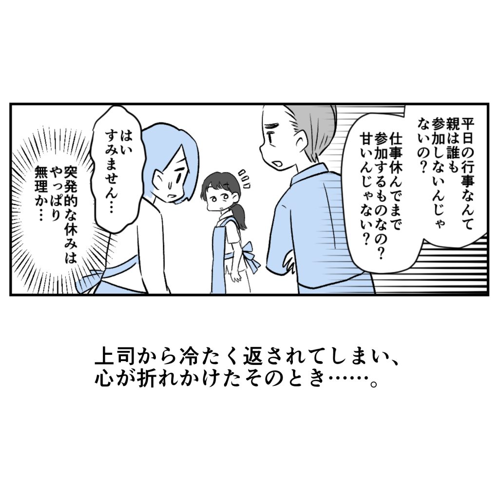 上司「仕事は……?甘いんじゃないの」現れた救世主!わが子の成長