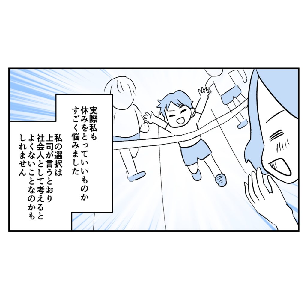私の選択は、上司が言うとおり社会人として考えると、よくないことなのかもしれません。1人休むことで誰かに負担がかかったり、職場がまわらなくなったりすることがあります。実際私も休みをとっていいものかすごく悩みました。
