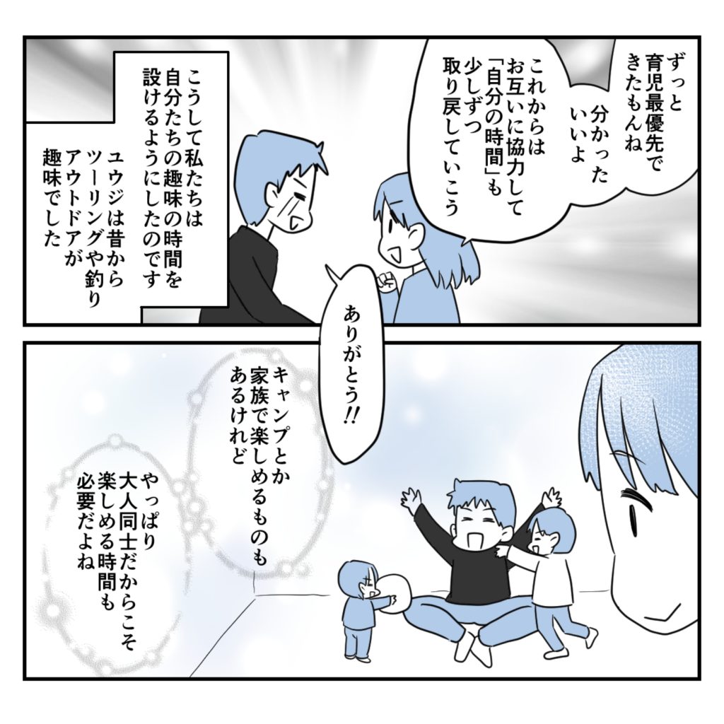 元々多趣味だった私たち夫婦ですが、子どもが幼いうちは互いの趣味を封印して子育てに邁進してきました。それでも子どもが少しずつ大きくなったことで、互いの趣味を子どもと一緒に楽しめるように。また夫婦どちらか1人で子ども2人を連れて出かけられるようにもなってきたのです。ご機嫌に子どもたちと遊ぶユウジを見ながら、そう思いました。