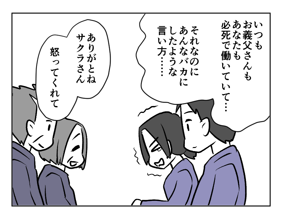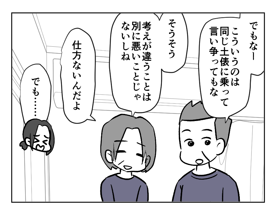 なんてよい義両親なのでしょう。けれど、たとえ同じ土俵に上がることになったとしても、相手に自分たちの気持ちを分からせることも場合によっては必要なのではないでしょうか。ましてやそれが実の息子であるのならば、しっかりと「そんな考え方をするな!」と一喝してもらいたいところです。読者の皆さんも、そんな義父が見たいですよね?
