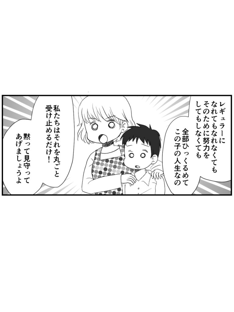 私:「いまの経験が全部まるごとあなたの人生の経験になるんだから……ね。お母さんたちは手を差し伸べてくれたら、いつでも応援するから!」