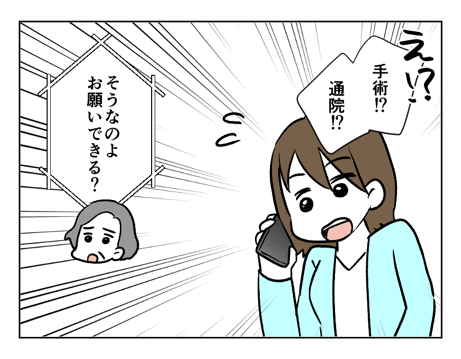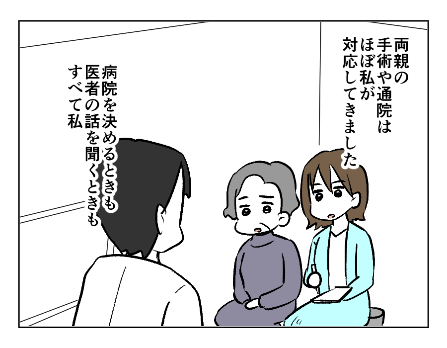仕事をしていないナミエさん。それなら時間がたくさんあるはずなのですが、家事や両親の手伝いもせず、お父さんの具合が悪くなっても病院に関することを一切やりません。家にいるだけで、本当に何もしないのです。いつもアユさんが車で1時間かけて、子どもを連れて行っていました。