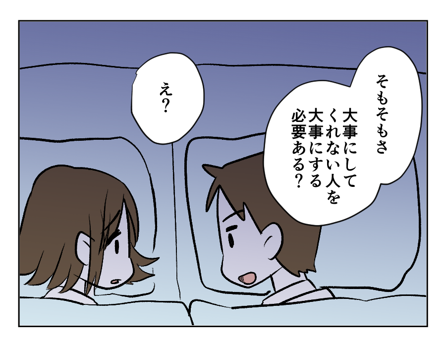 アユさんはずっと、平等に両親から愛されることを望んでいました。たくさん両親の役に立って、自立してちゃんとやっているのに、なぜナミエさんより愛されないのか不思議でたまらなかったのです。そのたびに「もっと頑張ろう」と自分を奮い立たせていましたが……。ナミエさんは両親が愛してくれる。アユさんは、アユさんの家族が愛してくれる、ないものを欲しがるよりも、あるものを大事にしていけばいいのではないでしょうか。