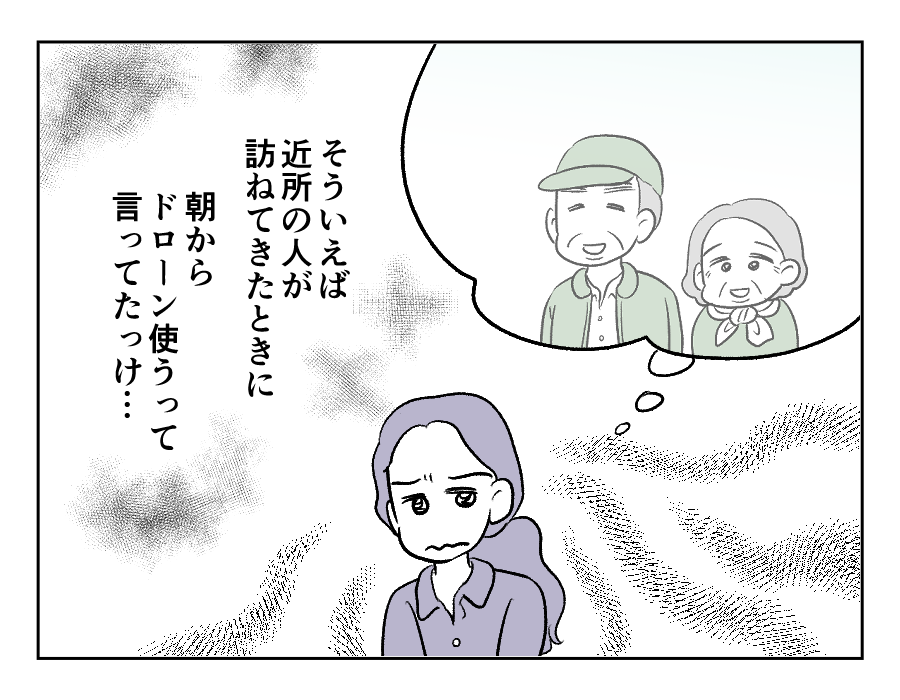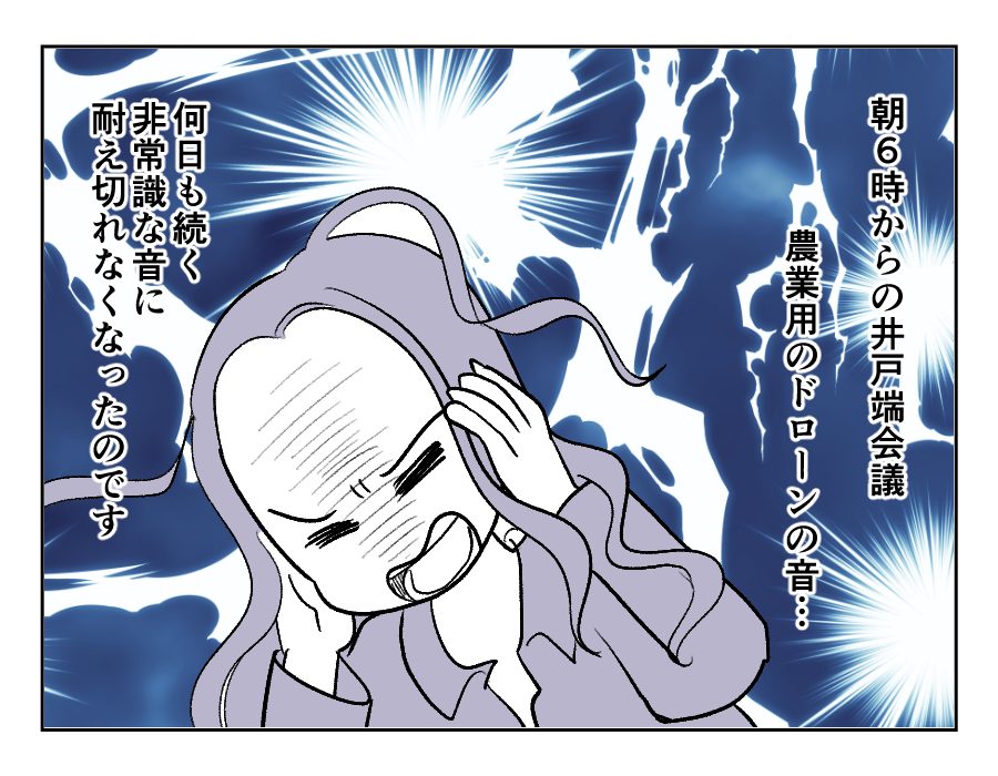 町内会への入会や町内会費の徴収に続いて、今度は朝早くからの騒音に悩まされることとなったミレイさん。農業用のドローンの音は想像以上に大きいし、近所の人たちの笑い声で目が覚めることもあるそうです。ストレスが溜まっている様子ですね……。