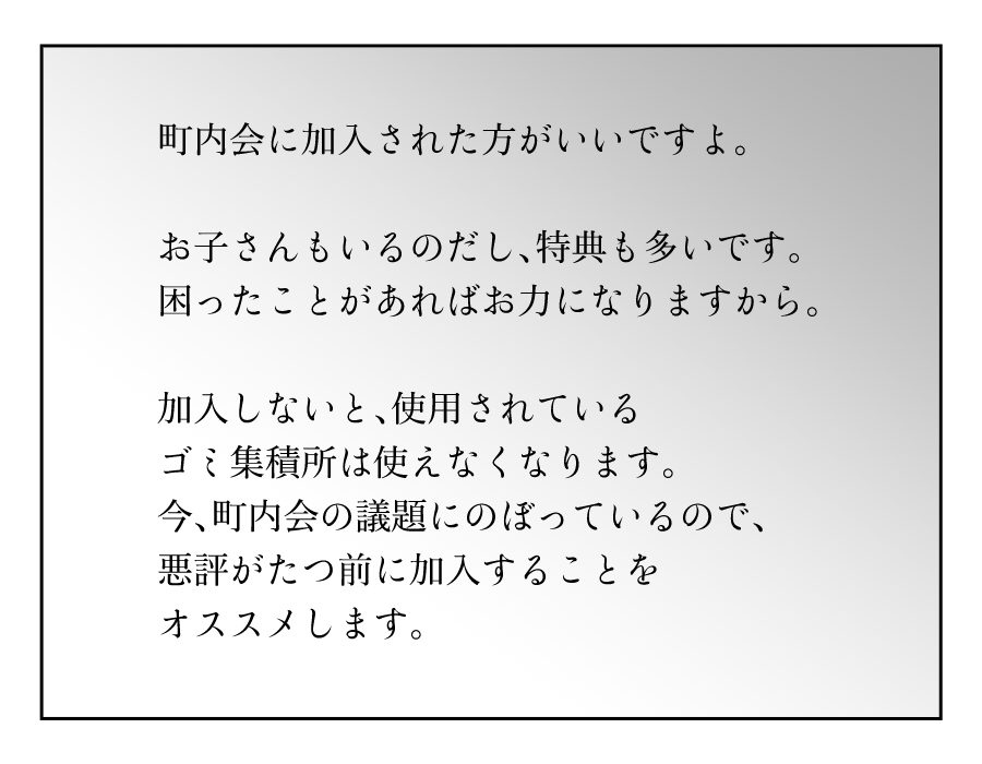 「ゴミ捨て場なんてたくさんある」、「私がどこに捨てているか把握しているなんて気持ちが悪い」これがミレイさんの言い分です。しかし、よそのゴミ捨て場はほかの町内会の管轄なのではないでしょうか。都内で暮らしていて町内会費なども支払っていなかったミレイさんは、そこのあたりがわからないようです。