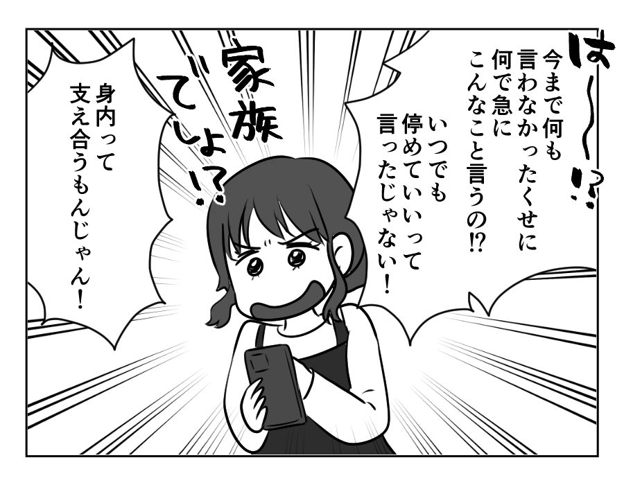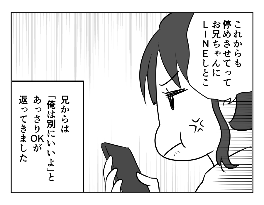 エマさんのなかには、「家族同士、助け合うのは当然」という考えがあるそう。それなのにヒカリさんから「停めないで」と言われてしまい、「結婚したんだからヒカリさんも家族でしょう? なのにそんな冷たいことを言うなんて!」とたいへん憤慨しています。エマさんはさっそくカズトシさんに連絡をして、「俺は別に(停めても)いいよ」という言葉を引き出すことに成功。「いいと言われたんだから、今後も堂々とお兄ちゃんの家に停めてやる!」と思うエマさん。なんだかトラブルの予感です。