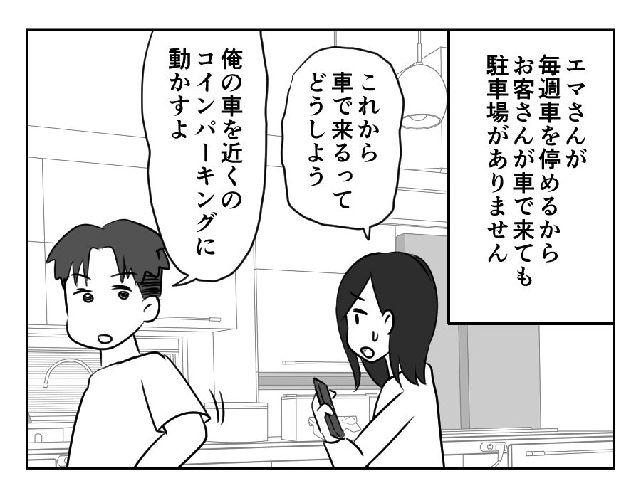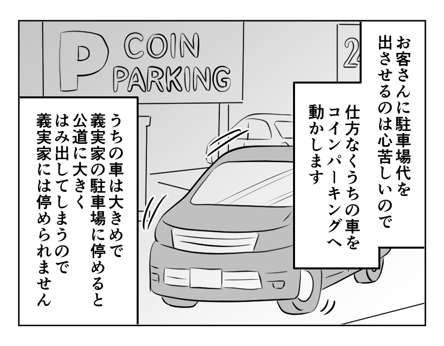 週末になると、自宅にヒカリさんのご両親やカズトシさんの友人など、さまざまなお客さんが車で来ることがあるそうです。その度にコインパーキングへ自分たちの車を動かし、お金を払う……「どうしてうちが払わなくちゃいけないの!?」とヒカリさんが怒るのも、もっともな話ですよね。いっぽうのカズトシさんは、「お客さんはたまになんだからいいじゃないか」と。しかしその言葉にも納得のいかないヒカリさんなのでした。
