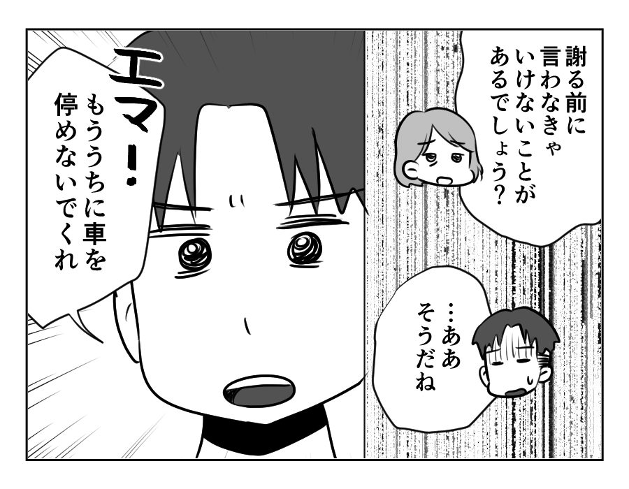 実はお母さん、エマさんに「毎週カズトシの家に停めてるけど大丈夫なの?」と頻繁に尋ねていたようです。しかしその度にエマさんは、「いつでも停めてねって言ってたよー」とヘラヘラ返事をしていたとのこと。ヒカリさんも何も言ってこないので、そのままにしていたというのが実際のところでした。ですがよく考えれば、嫁の立場で義母に「あなたの娘、迷惑です」なんて言えるわけがありませんよね。自分がもっと早く対応すべきだった、と悔やむお母さんなのでした。